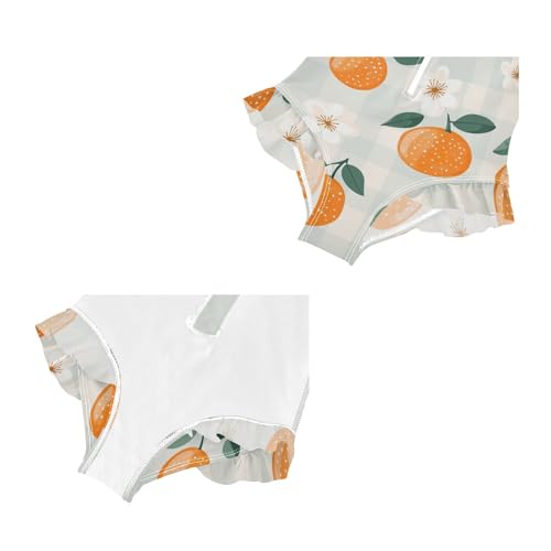 Girls Swimsuit One Piece Quick Dry Rash Guard Zipper Swimwear, Oranges Flowers Plaid 3T 6