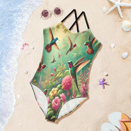 Flowers Hummingbirds Bathing Suits for Girls Swimsuit Summer Beach Swimwear One Piece Swimsuits 6