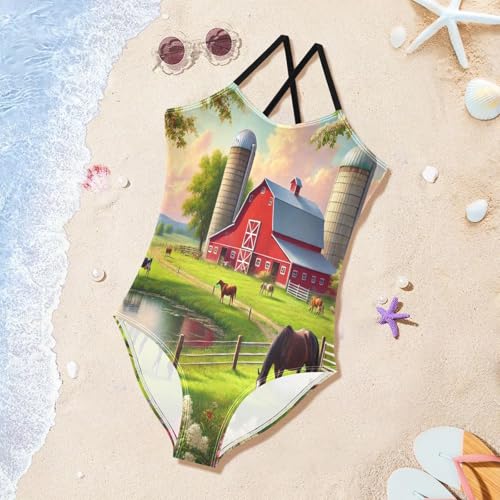 Farm Red Barn Girls Bathing Suit Swimsuit One Piece Swimsuits Summer Beach Swimwear 4