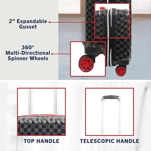 • TRUE RELIGION LUGGAGE: This cool and stylish hardshell luggage features a sleek checkered pattern with bold "True Religion" branding, and is perfect for all your travel needs, with dual zippers to keep your valuables safe and secure inside; this hard side luggage meets most airline requirements for carry-on luggage and fits into most overhead bins