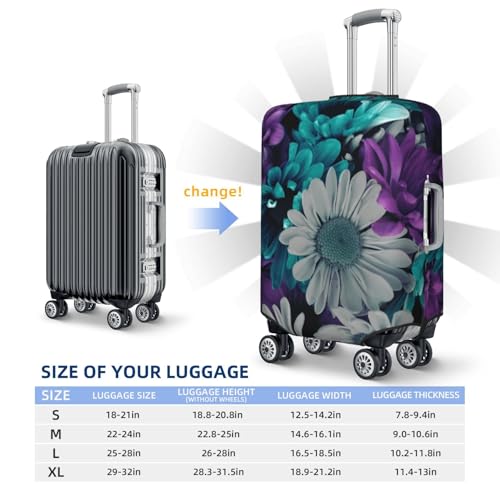 Purple And Teal Flowers Print Luggage Suitcase Covers Elastic Washable Luggage Protector Luggage Covers For Suitcase 6