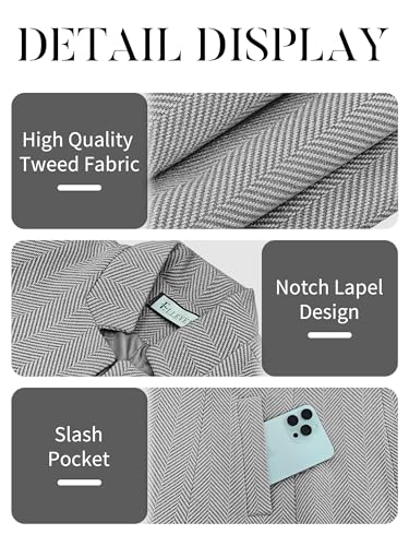 • 【Functional & Trendy】: Featuring a herringbone plaid pattern, long sleeves, a notched stand collar, and an open front with a waist-cinching design, this blazer combines practicality with style