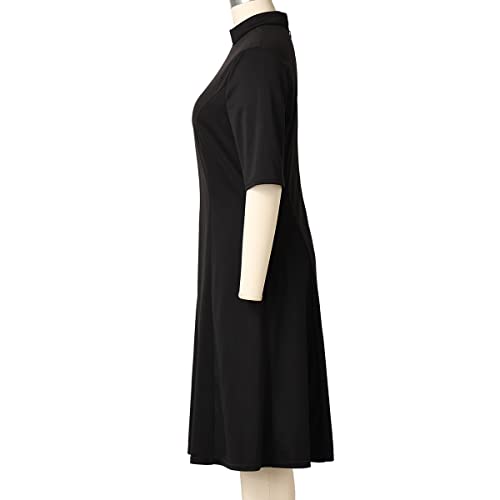 Church Clergy Dress for Women Minister Half Sleeve Loose Elegant Dress with Tab Collar 5