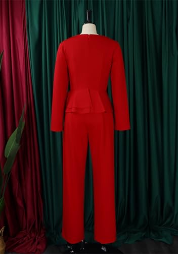 • CLASSIC SOLID PANTS SUIT:The long-sleeved v-neck ruffle hem tunic top is paired with trousers, a classic set for professional and professional work.