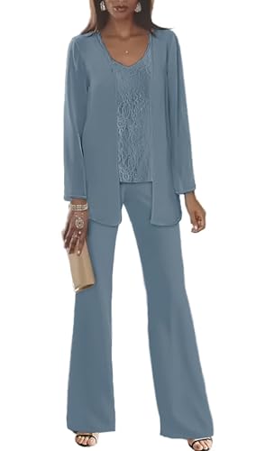 • Features: 3 pieces chiffon pants suits for women dressy elegant,long sleeve mother of the bride pantsuits with jacket, lace appliques mother of the groom pants suits for women casual, formal evening wedding guest dress
