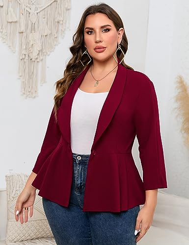 • DESIGN: This work office cardigan blazer features with lapel collar, open front with one button, cute ruffle hem, 3/4 sleeves, casual style. Comes in solid color: black, royal blue, navy blue, red and white. Four sizes: X, 2X, 3X, 4X