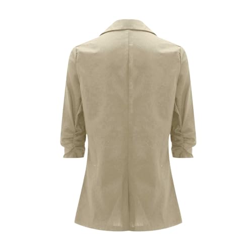 Linen Blazer for Women Lightweight Stretchy Ruched Long Sleeve Fully-Lined Cotton Casual Work Jacket with Pockets 3