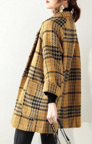 chouyatou Women Winter Notch Lapel Wool Blazer Trench Coat Plaid Double Breasted Business Causal Peacoat 5