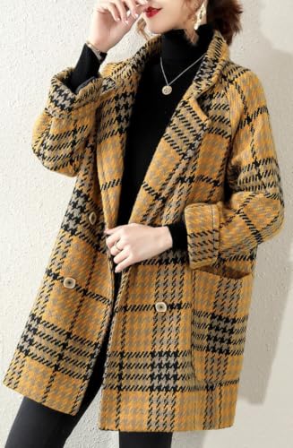 More information about chouyatou Women Winter Notch Lapel Wool Blazer Trench Coat Plaid Double Breasted Business Causal Peacoat