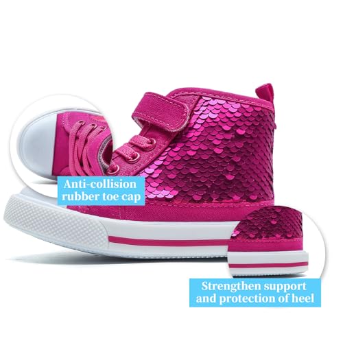 • 【Sequin & High Top Design】: Our toddler girl sneakers with sparkle color change flipping sequins and classic canvas high top design, beautiful sneakers for toddler girls, best gift to your little girl