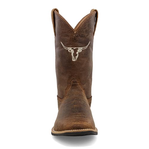 Twisted X Kid's Top Hand, New Wide Square Toe, Tan & Chocolate, 4 M 2