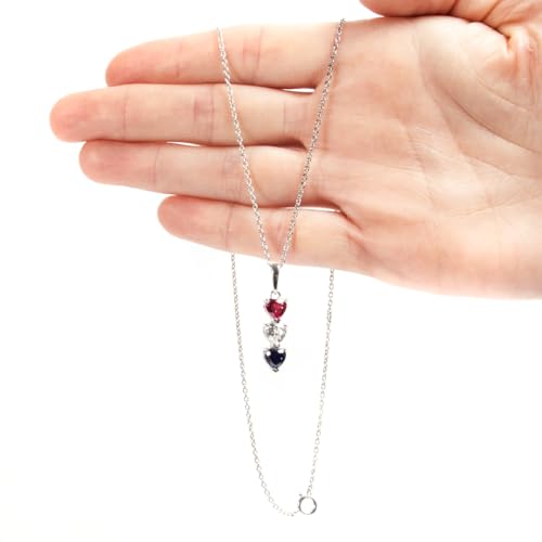 More information about Silver Smile Sterling Silver 3 Birthstone Pendant for Women – Lab-Grown Ruby, White & Blue Gemstones – Hypoallergenic & Tarnish Resistant – 925 Rhodium-Plated Pendant – Elegant Patriotic Gift for Her