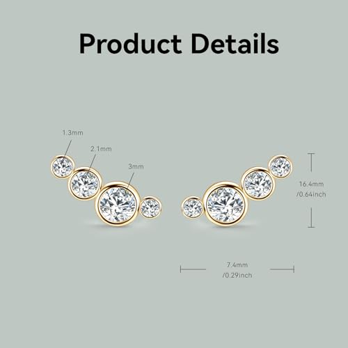 Moissanite Small Crawler Stud Earrings, 925 Sterling Silver D-E Color Lab Created Imitation-Diamond Climber Cartilage Earring, Dainty Jewelry Hypoallergenic for Sensitive Ears 5