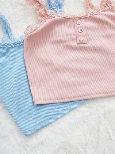 Milumia Girl's 2 Pack Cute Lace Trim Ribbed Camisoles Button Front Cami Crop Tops 2