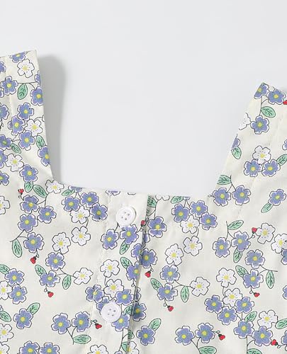 Girls Summer Short Sleeve Tops Cute Ruffle Square Neck Peplum Shirts Casual Cotton Smocked Blouse 2-12 Y 5