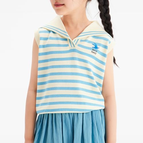 More information about Girls Striped Knit Sleeveless Top V-Neck Summer T-Shirt Fit High Stretch 5T-13Y