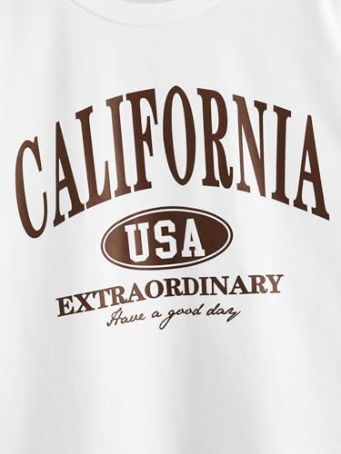 Verdusa Girl's Letter Print Casual T Shirt Short Sleeve Round Neck Tee Tops White 9Y 1