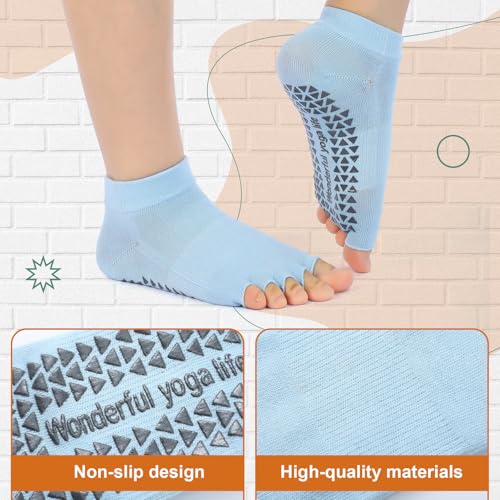 Jeyiour 7 Pairs Yoga Pilates Socks Toeless with Grips Non Slip Yoga Open Toe Pedicure Split Toe Socks for Women 5