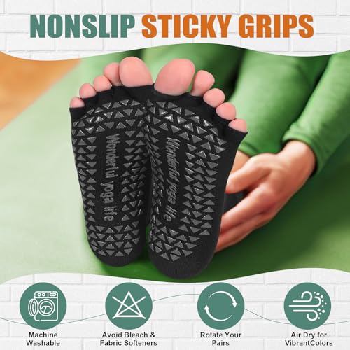 • Stylish and Practical Design: the grip yoga socks feature an open toe design, allowing you to move and stretch your toes naturally as if barefoot, while also providing protection against cold or dirty gym floors; Your toes can naturally extend for a better tactile experience and balance, enhancing your connection with your body and surroundings in every pose