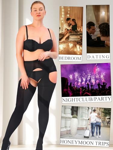 HONENNA Plus Size Suspender Tights for Women, Semi Opaque Sexy Garter Belt Nylons Mock Thigh High stockings 4