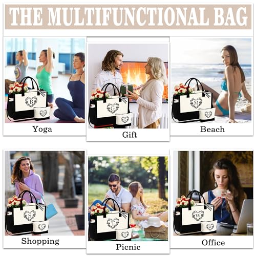 HOT ! YOOLIFE Mothers Day Gifts - Initial Canvas Tote Bag Makeup Bag, Personalized Gifts for Women Mom Wife Teacher Friend Birthday