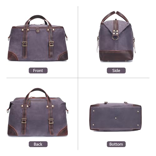 Large Capacity Waterproof Waxed Canvas & Genuine Leather Travel Duffel Bag,TSA Friendly - Grey 4