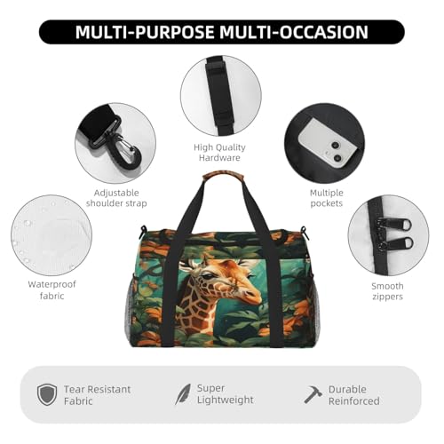 HOT ! Travel Duffel Bag For Men Women, Forest Animal Giraffe Carry On Sport Gym Bag With Shoulder Strap Lightweight Waterproof Weekender Bag Overnight Bag