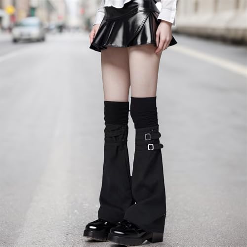 HOT ! Long Japanese Leg Warmers Y2k Women Goth Flared Buckle Strap Plus Size 80s Punk Alt Gothic