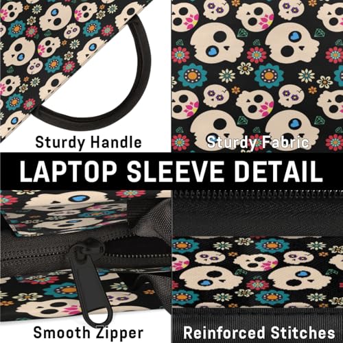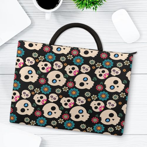 Cute Skulls Flowers Laptop Sleeve with Handle Waterproof Computer Carrying Case 6