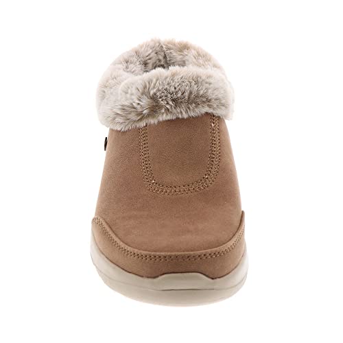 • COZY SLIP-ON STYLE: Smooth Perform-Tex fabric upper with two-tone faux fur collar trim and lining for a soft, cozy feel. Slip-on mule design for easy on and off.