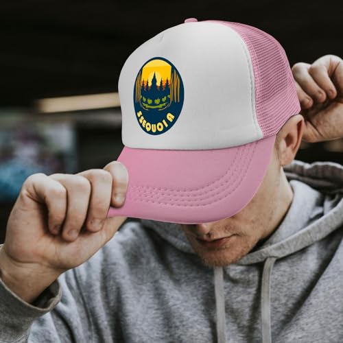 • STYLISH DETAILS: Pink and white trucker hat design with Sequoia National Park scenic graphic, perfect for outdoor adventures and casual wear