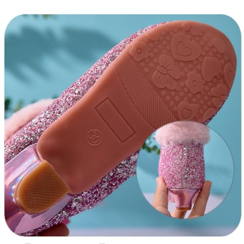 Girls Winter Warm Fur Low Heels Ankle Boots Glitter Sequin Princess Dress Booties with Side Zipper 5